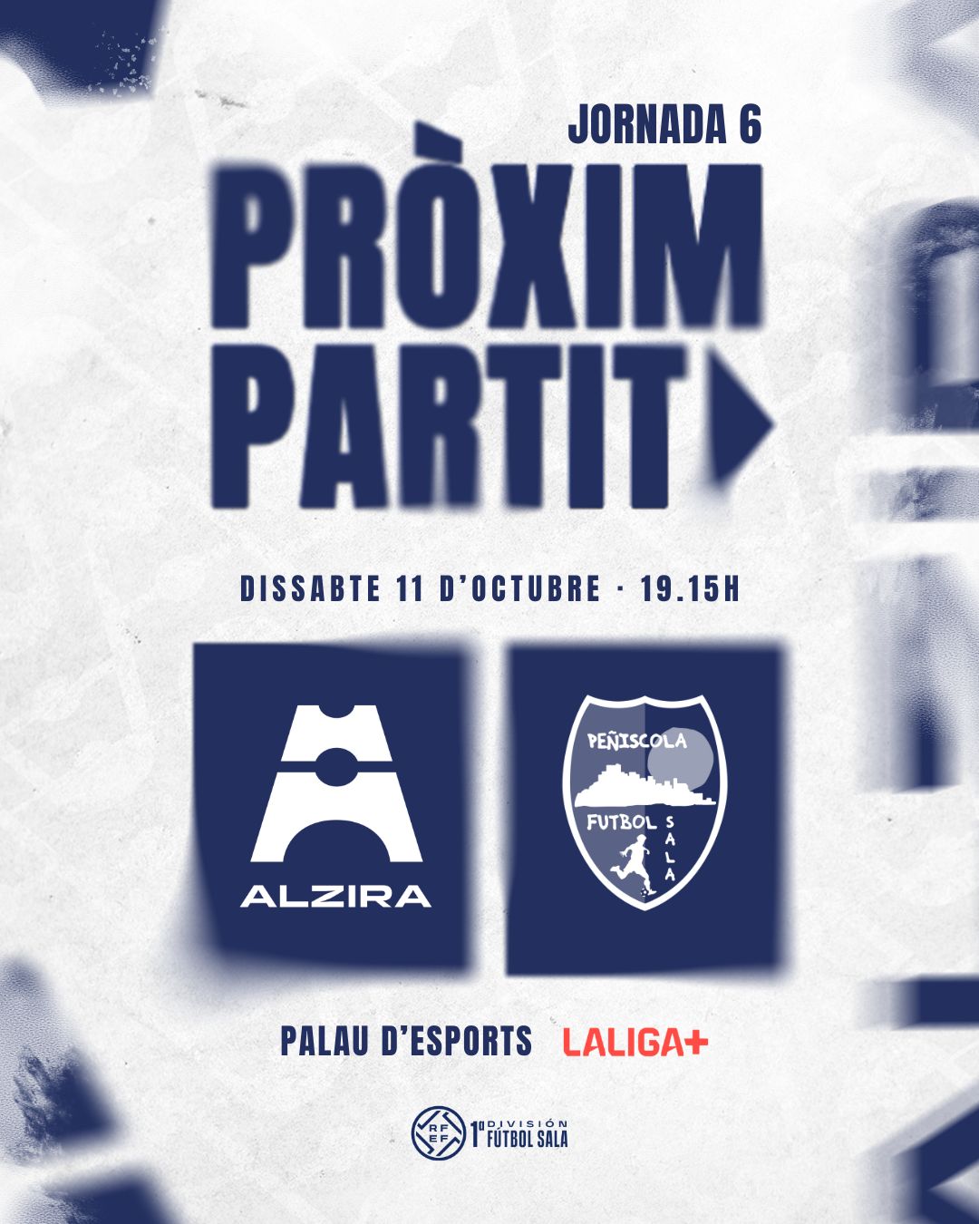 El próximo sábado 4 de octubre a las 19:15 horas, el Family Cash Alzira FS recibirá en el Palau d’Esports al Servigroup Peñíscola FS en una nueva jornada de Primera División.