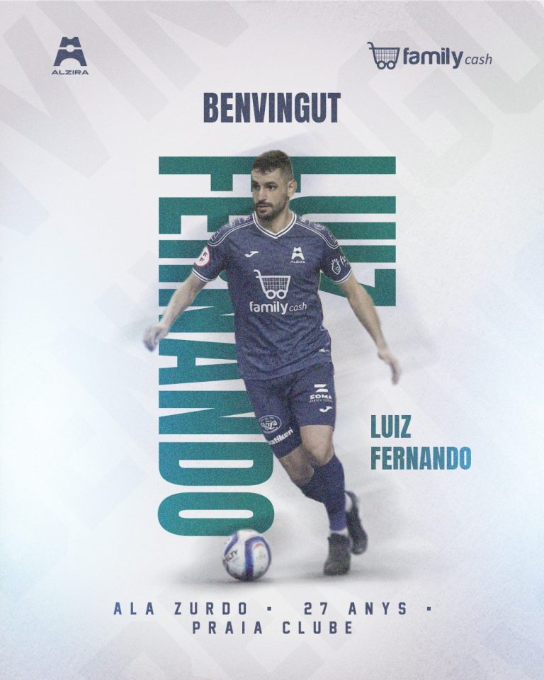 El Family Cash Alzira FS ha cerrado la incorporación del ala brasileño Luiz Fernando, que llega procedente del Praia Clube, equipo de la Primera División del fútbol sala brasileño, para reforzar la plantilla alzireña. El jugador de 27 años ya se encuentra en Alzira y se incorporará al trabajo de manera inminente.