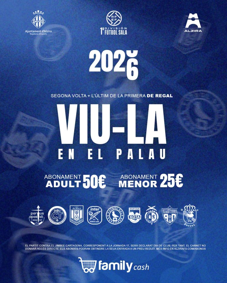 Asimismo, cada abonado del Family Cash Alzira FS podrá invitar a un acompañante, obteniendo una entrada gratuita adicional para compartir la magia del fútbol sala con quien desee. Esta opción, además de en la tienda, también se puede gestionar a través del enlace que los abonados han recibido vía correo electrónico.